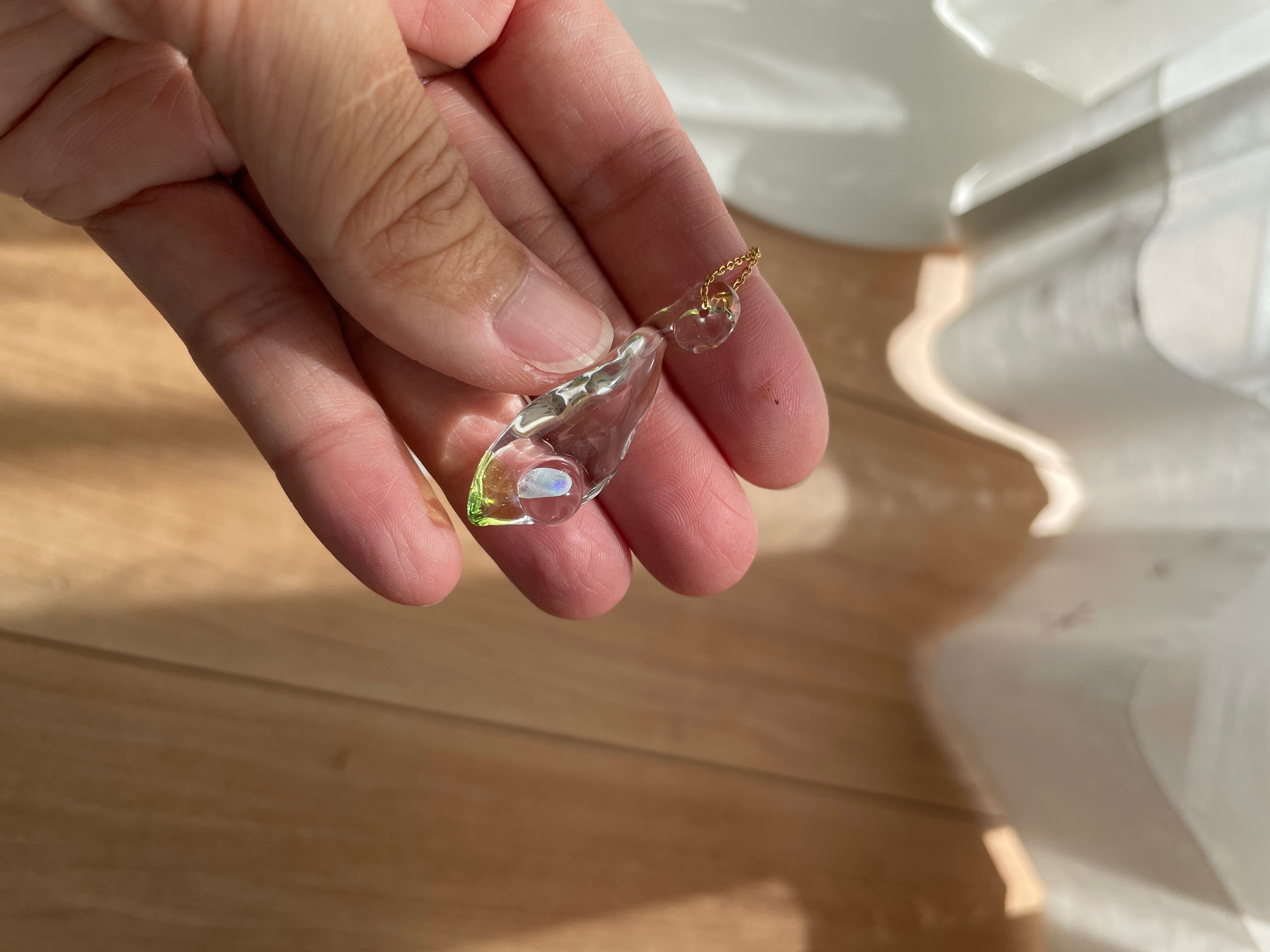 葉っぱの上に一粒の雫が乗ったイメージの作品です。