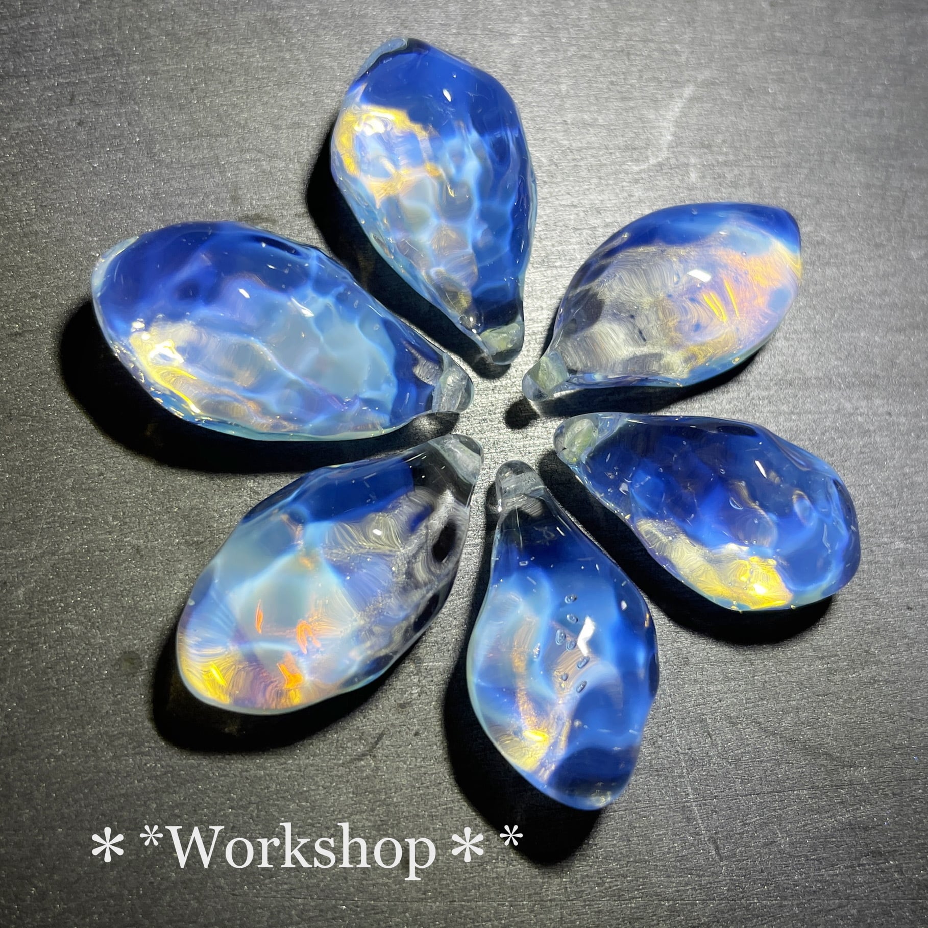 気を通すと変わる色味や、細工後のガラスの表情の変化が楽しめます*